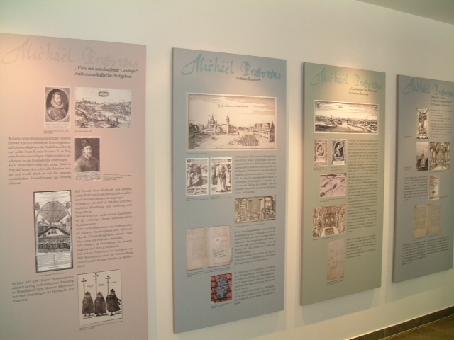 Auf der Creuzburg ist in der „Praetoriusstube“ eine Praetorius-Dauerausstellung zu sehen. Auf zehn großen Tafeln sind Leben und Werk des Komponisten in zahlreichen Abbildungen und knappen Texten dargestellt. In Glasvitrinen kann man einige historische Instrumente, Noten und das SYNTAGMA MUSICUM in drei Bänden betrachten. Musikbeispiele sind zu hören. Der Museumsshop bietet Literatur und CDs zu Praetorius an.