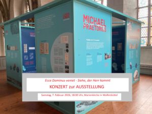 Das Konzert „Ecce Dominus veniet – Siehe, der Herr kommt“ bietet einen Längsschnitt durch das musikalische Schaffen des Hofkapellmeisters Michael Praetorius (1571/72–1621) von frühen lateinischen Kompositionen über italienisch inspirierte mehrchörige Stücke hin zu großbesetzten Choralkonzerten. Den besonderen Hintergrund dafür bildet die 2023 eröffnete Ausstellung „Michael Praetorius – Musiker einer Zeitenwende“ auf der Empore der Hauptkirche. Das Konzertprogramm ist auf die Notenbeispiele der Ausstellung abgestimmt.